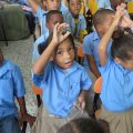 Antes de iniciar la proyección, los estudiantes tuvieron un gesto muy significativo, explica el coordinador de Programas Medioambientales de GFDD en la República Dominicana, Omar Shamir Reynoso. Los 47 estudiantes plasmaron a lápiz en papel bond los temas y las lecciones que aprendieron durante la proyección del 25 de noviembre de 2015, cuando se proyectó ¿Basura o Recurso? Una experiencia de la República Dominicana y Planeta Océano. En los próximos meses continuarán las proyecciones de documentes medioambientales con la finalidad de fomentar la formación de los estudiantes.
